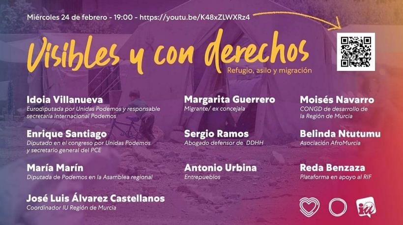 Os informamos de que esta tarde, miércoles 24 de febrero, a partir de las 19:00, tendrá lugar una charla titulada: «Visibles y con derechos: refugio, asilo y migración».