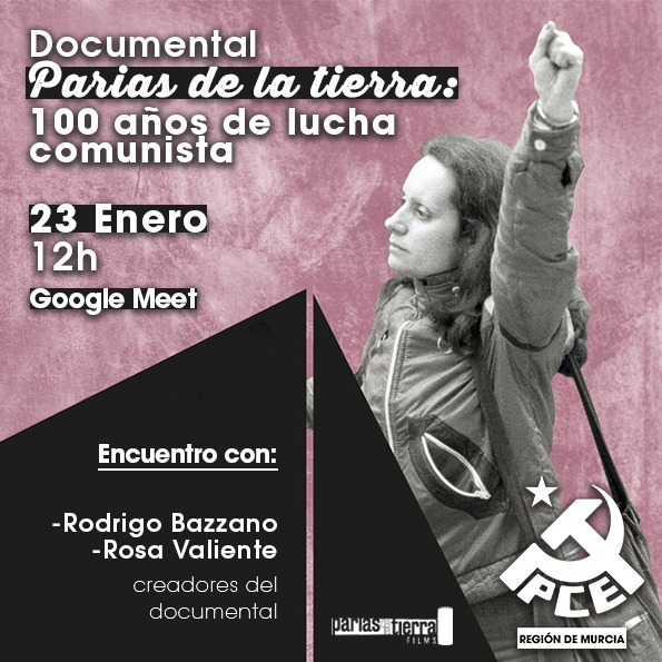 Como sabéis, este año se celebra el centenario del PCE. Una productora cercana al Partido ha puesto en marcha una campaña de crowdfunding para poder grabar un documental con motivo del centenario. Bajo el título «Parias de la tierra» este documental pretende hacer un recorrido por los 100 años de lucha incansable del Partido Comunista de España y de su militancia.