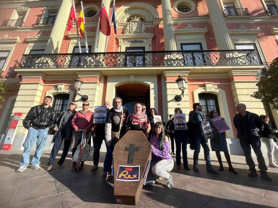 Murcia, 26 de febrero de 2026. Esta mañana ha tenido lugar una concentración a las puertas del Ayuntamiento de Murcia, convocada por la plataforma ciudadana Cine Rex Vivo, donde representantes vecinales y de Izquierda Unida-Verdes han denunciado la aprobación en el Pleno municipal del cambio de uso del histórico Cine Rex, una decisión que califican como un golpe definitivo al patrimonio cultural de la ciudad y un desprecio a la voluntad popular expresada en miles de alegaciones y firmas.
