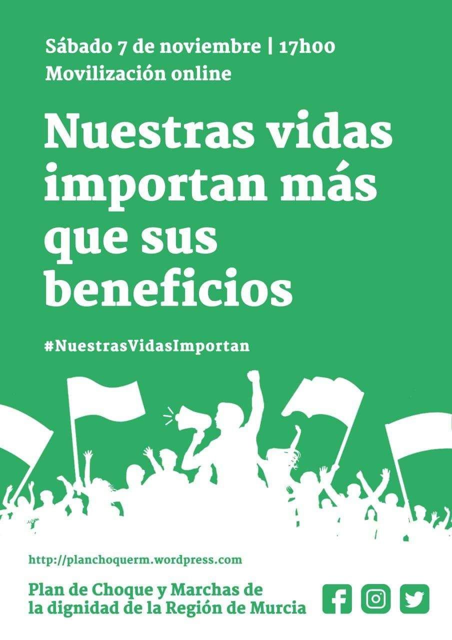EL PARTIDO Y LAS JUVENTUDES COMUNISTAS DE LA REGIÓN DE MURCIA APOYAN LA MOVILIZACIÓN ONLINE CONVOCADA POR PLAN DE CHOQUE Y LAS MARCHAS DE LA DIGNIDAD EL 7 DE NOVIEMBRE BAJO EL LEMA #NUESTRASVIDASIMPORTAN