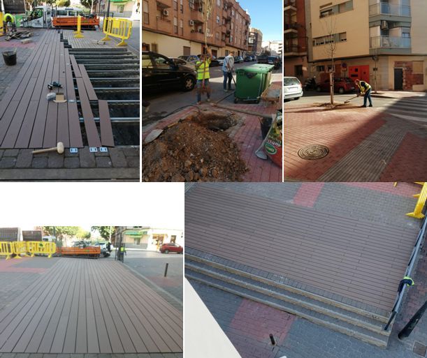 La entrada a la Rambla del Realejo, en su primer tramo entre la avenida Juan XXIII y la calle Marín Camacho, se cubrió en su momento con tarima, un material que se ha ido deteriorando con paso del tiempo hasta precisar su sustitución desde hace meses.