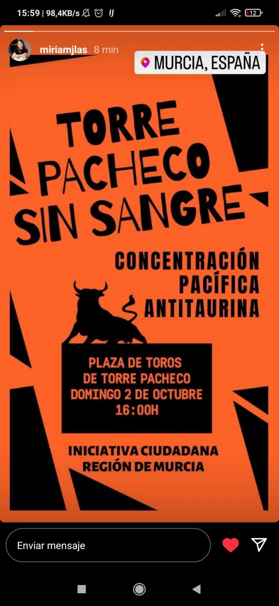 TORRE PACHECO: IU-Verdes Región de Murcia apoya a los colectivos de jóvenes que convocan una manifestación antitaurina en Torre Pacheco.