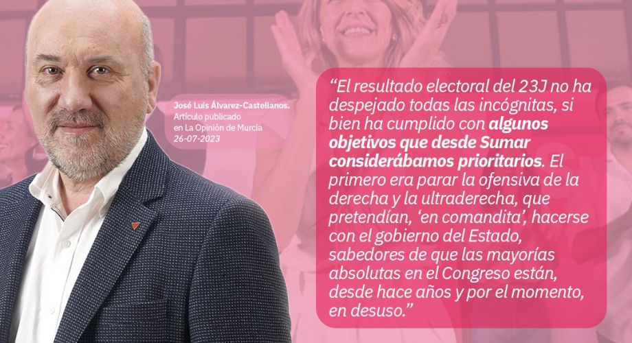 El resultado de Sumar en la Región de Murcia consolida un espacio electoral amplio, susceptible de crecimiento, en el que mucha gente, por fin, se reconoce sin disputas de ningún tipo y con...