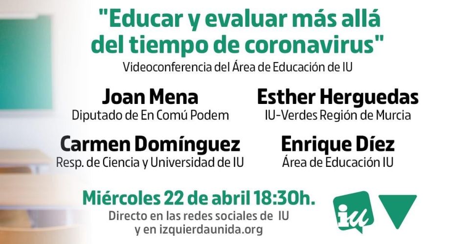 El Área de Formación de Izquierda Unida ha organizado para el próximo miércoles 22 de abril la videoconferencia «Educar y evaluar más allá del...