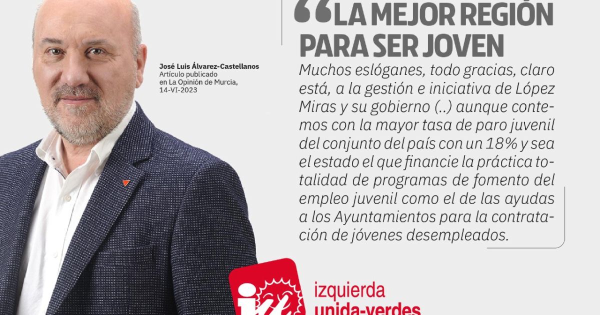 Así reza una imagen publicitaria en la página web de la CARM. Cuando tecleas sobre ella se despliega una presentación que anuncia las ventajas que conlleva ser joven en la Región de Murcia: «Somos l…