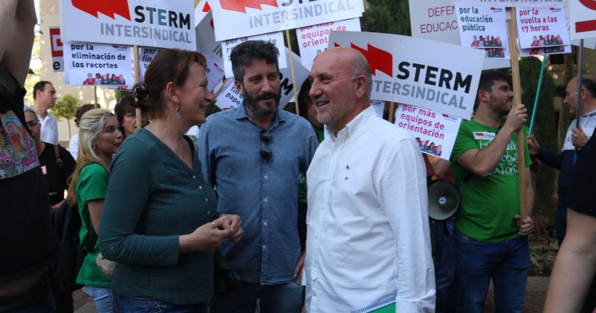 Murcia. 20-04-2023.-El coordinador regional de IU-Verdes, José Luis Álvarez-Castellanos, ha participado esta tarde en la manifestación convocada por los sindicatos de enseñanza para exigir a López M…