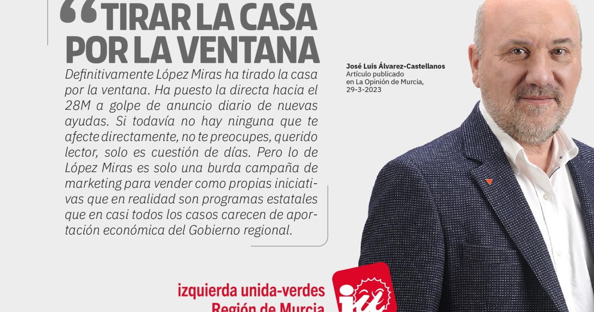 Definitivamente López Miras ha tirado la casa por la ventana, o eso parece. Ha puesto la directa hacia el 28 de mayo a golpe de anuncio diario de nuevas ayudas, desde jóvenes a comerciante…