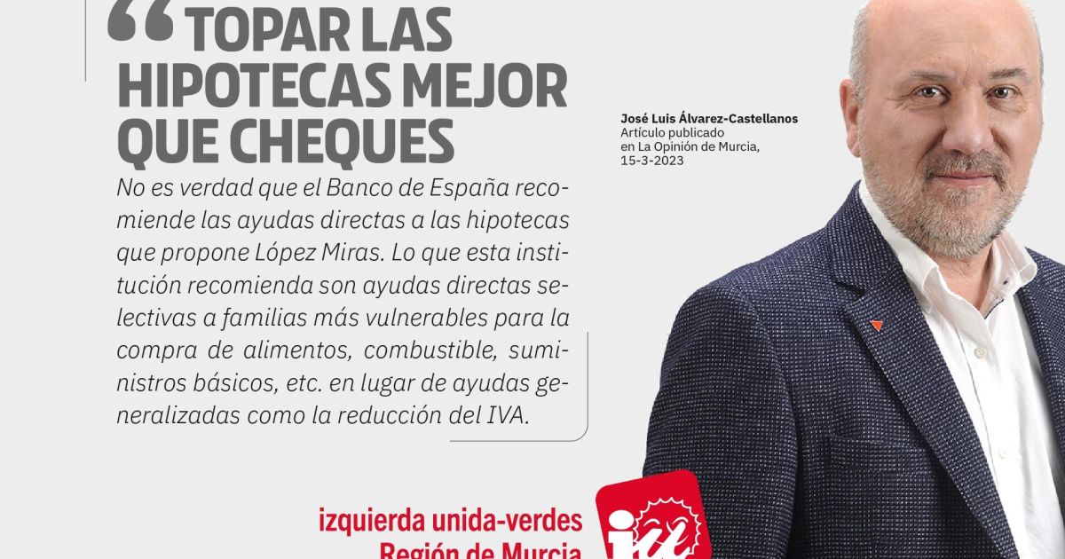 Hace dos semanas que López Miras viene anunciando una ayuda para hacer frente al incremento de las cuotas de las hipotecas variables originado por la subida de los tipos de interés. Se trata de un p…