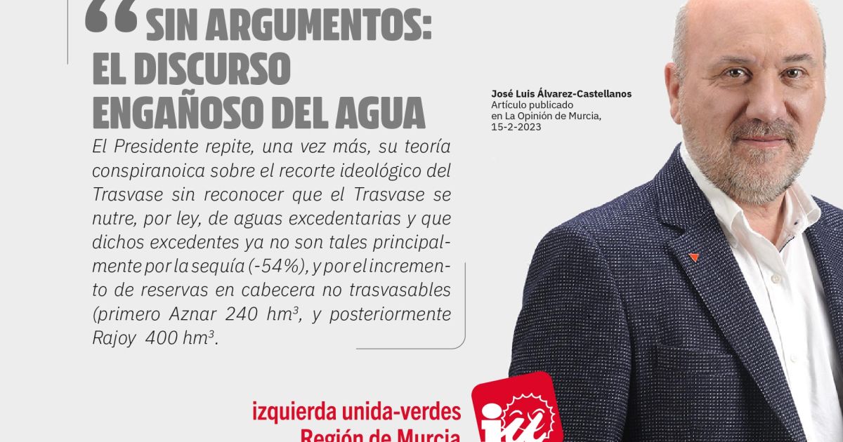 Falto de mejor argumento López Miras azuza, como Vox, el discurso del agua en su comparecencia hoy, a petición propia, en la Asamblea Regional donde repetirá, una vez más, su teoría conspiranoica so…