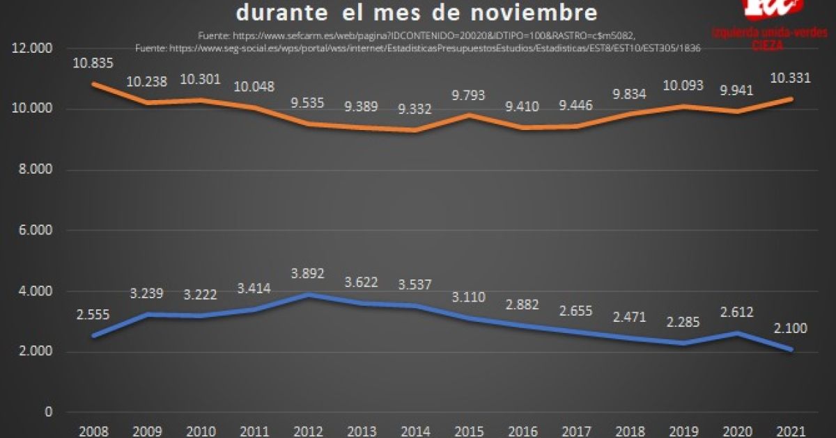 CIEZA:IU-Verdes de Cieza: “Noviembre dejó tres indicadores que revelan la recuperación del mercado laboral en el municipio”