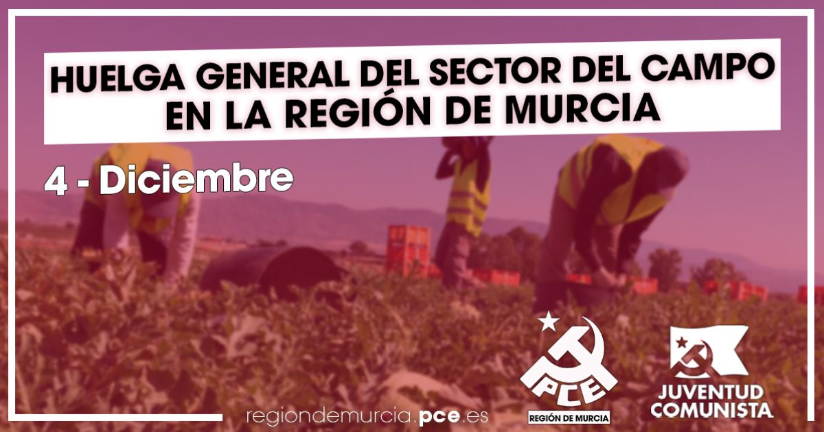 EL PARTIDO Y LAS JUVENTUDES COMUNISTAS DE LA REGIÓN DE MURCIA APOYAN LA HUELGA GENERAL DEL SECTOR DEL CAMPO CONVOCADA PARA EL PRÓXIMO 4 DE DICIEMBRE