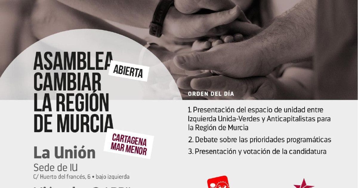 Os informamos de las próximas Asambleas Comarcales de Cambiar la Región: Izquierda Unida-Verdes-Anticapitalistas que realizaremos en el noroeste (Caravaca) y en la comarca de Cartagena-Mar Menor (La…