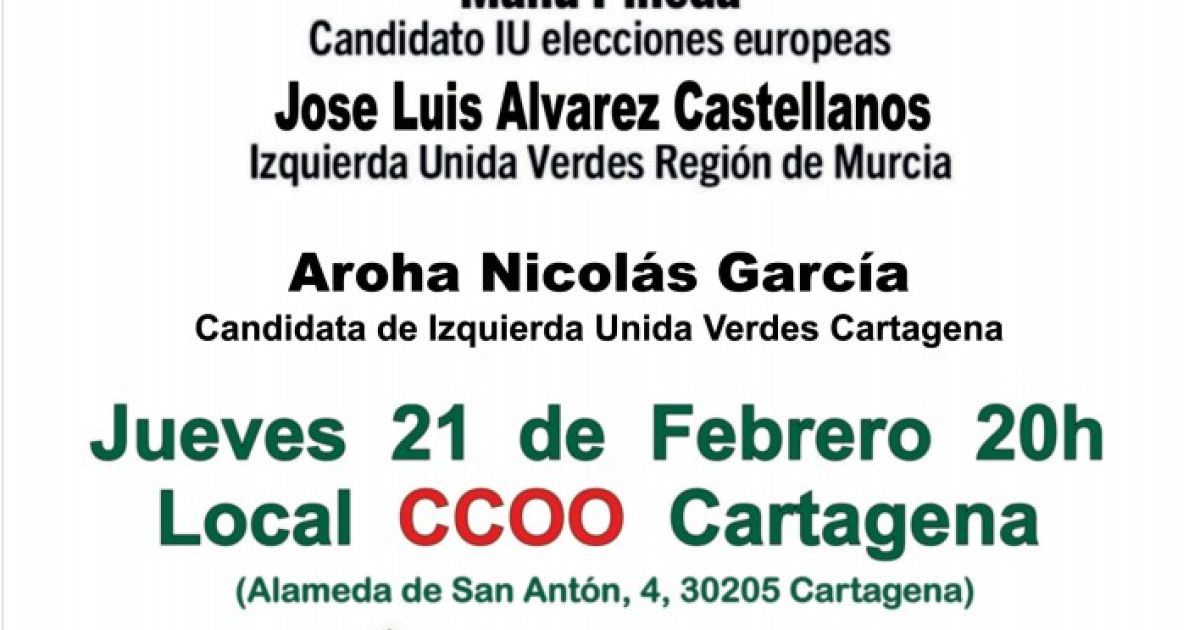 Os informamos de los próximos actos públicos que hemos organizado en Murcia y Cartagena y que contarán con la participación de Manu Pineda, candidato nº2 de IU a las Elecciones Europeas y la proyecci…