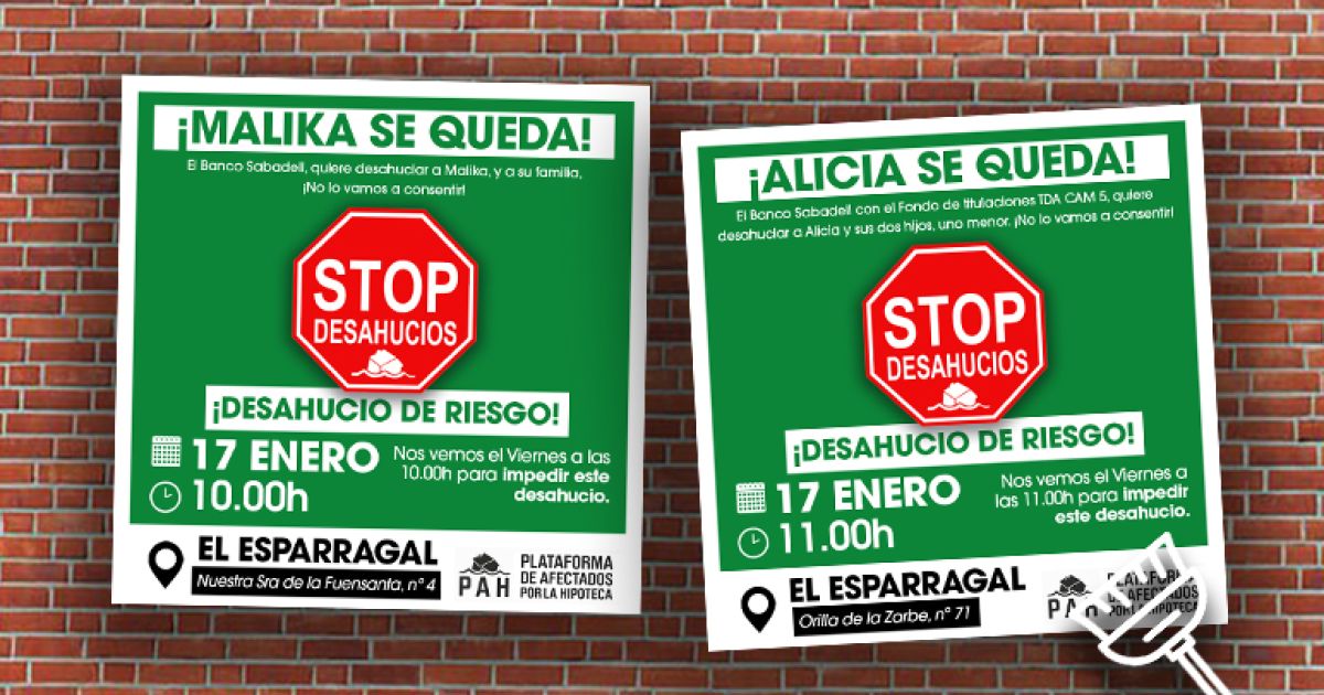 La PAH llama a movilizarse mañana en El Esparragal para frenar dos desahucios que dejarán en la calle a familias vulnerables