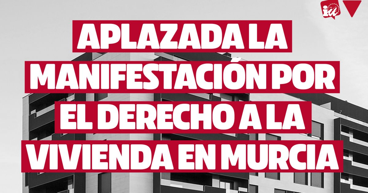 Murcia, 6 de noviembre de 2024- La Comisión Promotora de la Iniciativa Legislativa Popular (ILP) «Por el Derecho a la Vivienda en la Región de Murcia» ha decidido aplazar la manifestación que e…