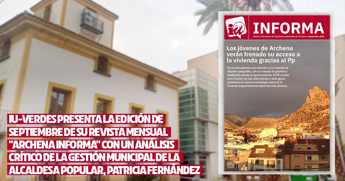 IU-Verdes presenta la edición de septiembre de su revistamensual «Archena Informa» con un análisis crítico de lagestión municipal de la Alcaldesa Popular, Patricia Fernández
